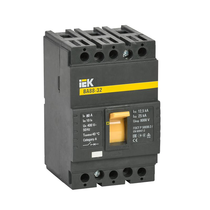 - Автоматический выключатель IEK ВА88-32 3Р 80А 25кА SVA10-3-0080-R