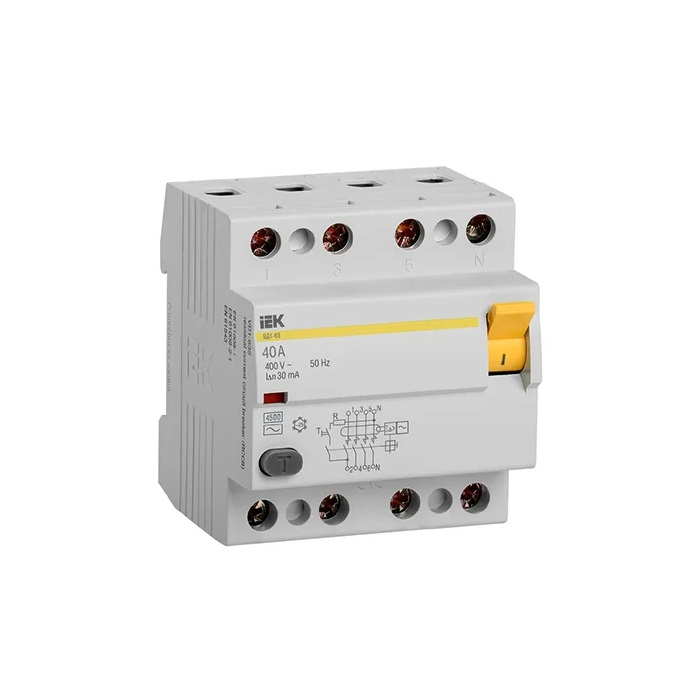 Описание УЗО ИЭК 4Р 40А 30mA АС ВД1-63