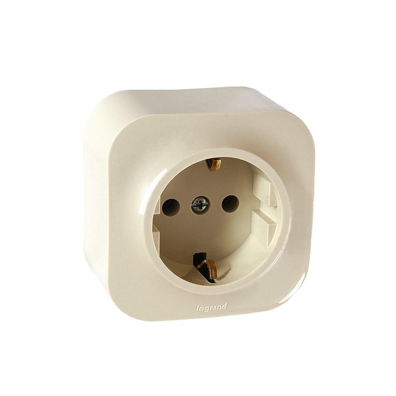 Розетка 1-местная Legrand 782241 с заземлением, накладная, кремовая