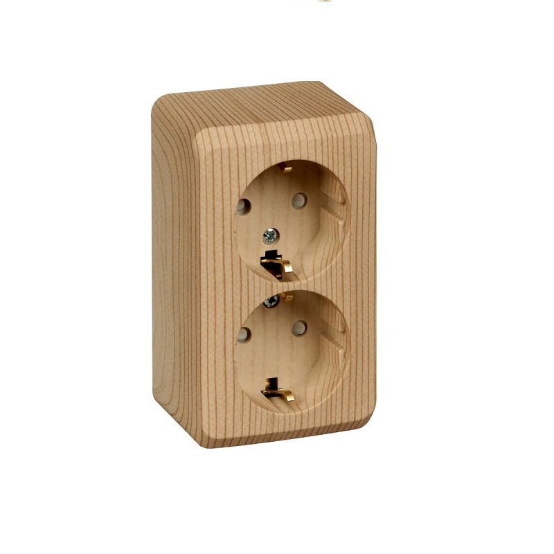Розетка 2-местная Systeme Electric Этюд PA16-008D с заземлением, шторки, накладная, сосна