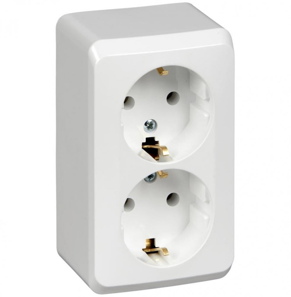Розетка 2-местная Systeme Electric Этюд PA16-007B с заземлением, накладная, белая предназначена для электропитания различных электрических приборов.