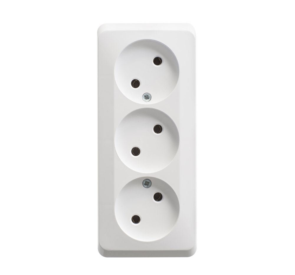 Розетка 3-местная Systeme Electric Этюд PA16-009B без заземления, накладная белая предназначена для применения в сетях до 250В, на ток до 16А. Трёхместная розетка позволяет подключить три устройства в одном месте. Она проста в установке и удобна в применении.