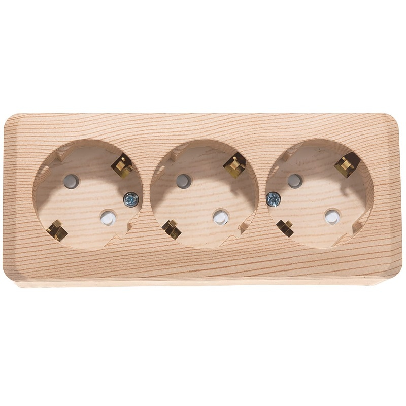 Розетка 3-местная Systeme Electric Этюд PA16-205D с заземлением, шторки, накладная, сосна предназначена для применения в сетях до 250В, на ток до 16А. Трёхместная розетка позволяет подключить три устройства в одном месте. Шторки и заземление обеспечивают дополнительную безопасность при косвенных прикосновениях.