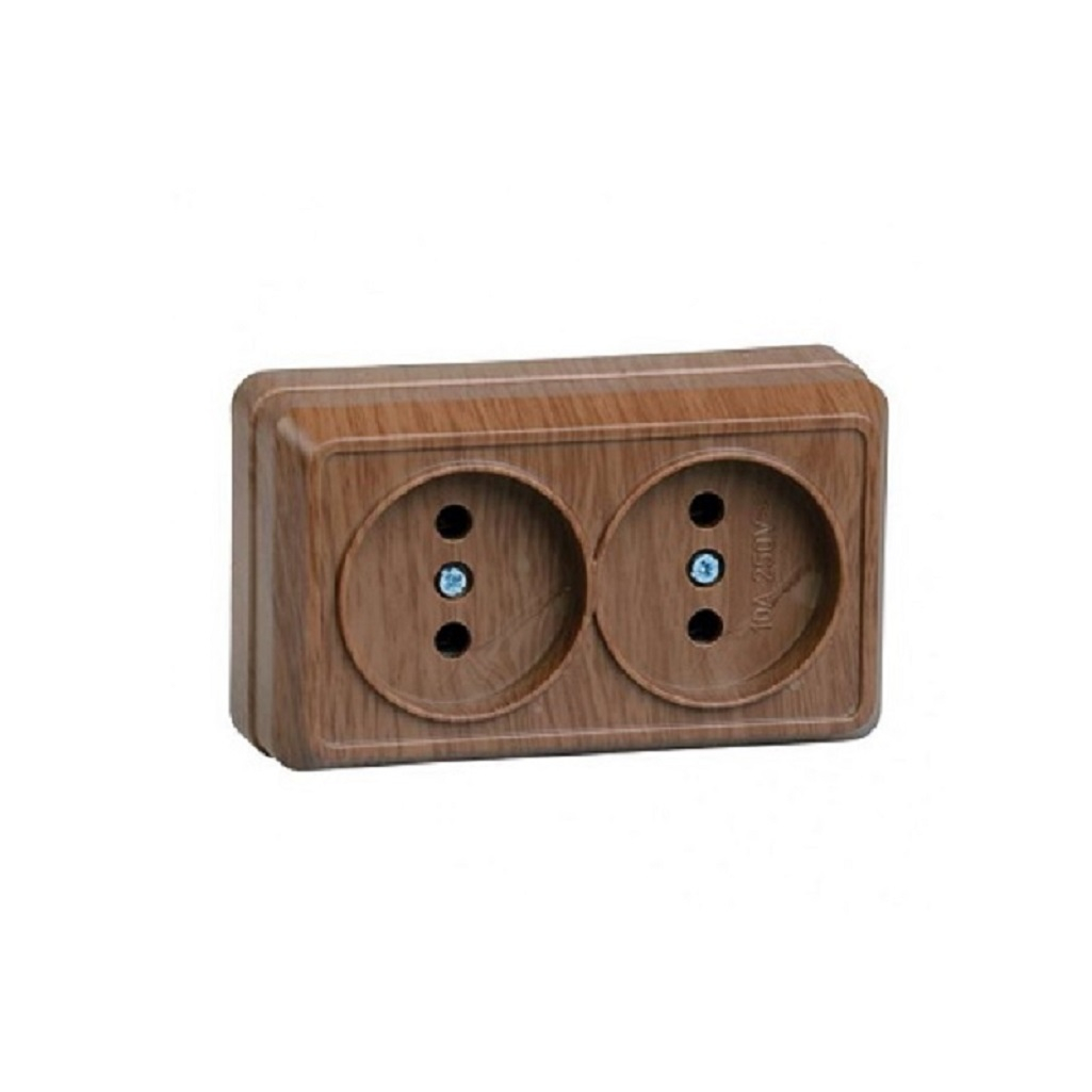 Розетка 2-местная IEK Октава ERO20-K04-10-DC без заземления, накладная, дуб