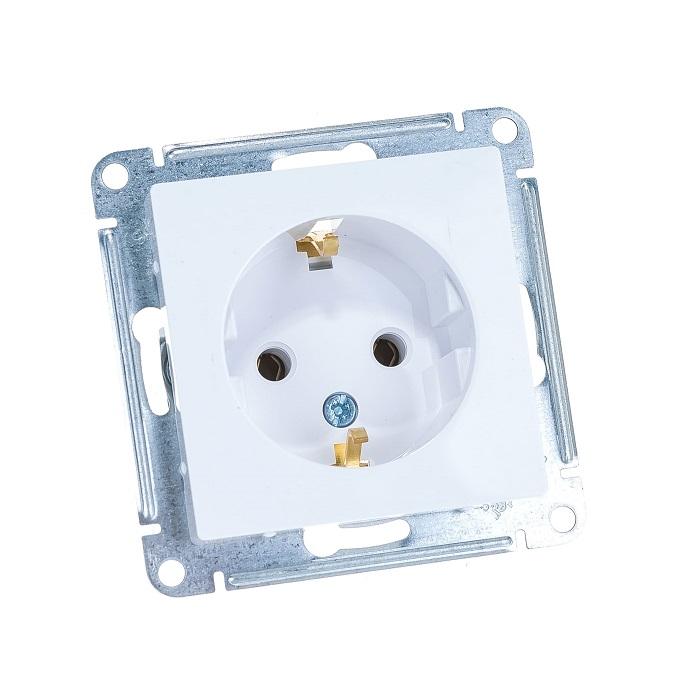 Розетка 1-местная Schneider Electric AtlasDesign ATN000143 с заземлением, встраиваемая, белая предназначена для подключения электроприборов к силовой электрической сети.