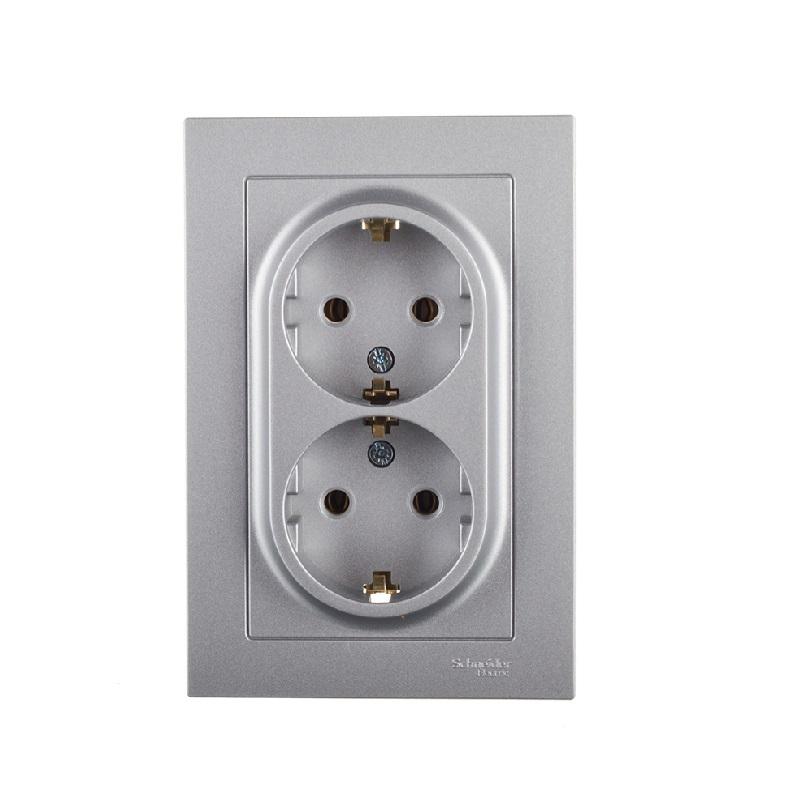 Розетка 2-местная Schneider Electric AtlasDesign ATN000324 с заземлением, встраиваемая, алюминий подключает электроприборы к силовой электрической сети, подходит для сетей 250 В на ток 16 А. Заземляющий контакт обеспечивает дополнительную защиту от удара электрическим током. Установка розетки - скрытая. Розетка изготовлена из пластика с ионами серебра, обеспечивающим антибактериальный эффект.