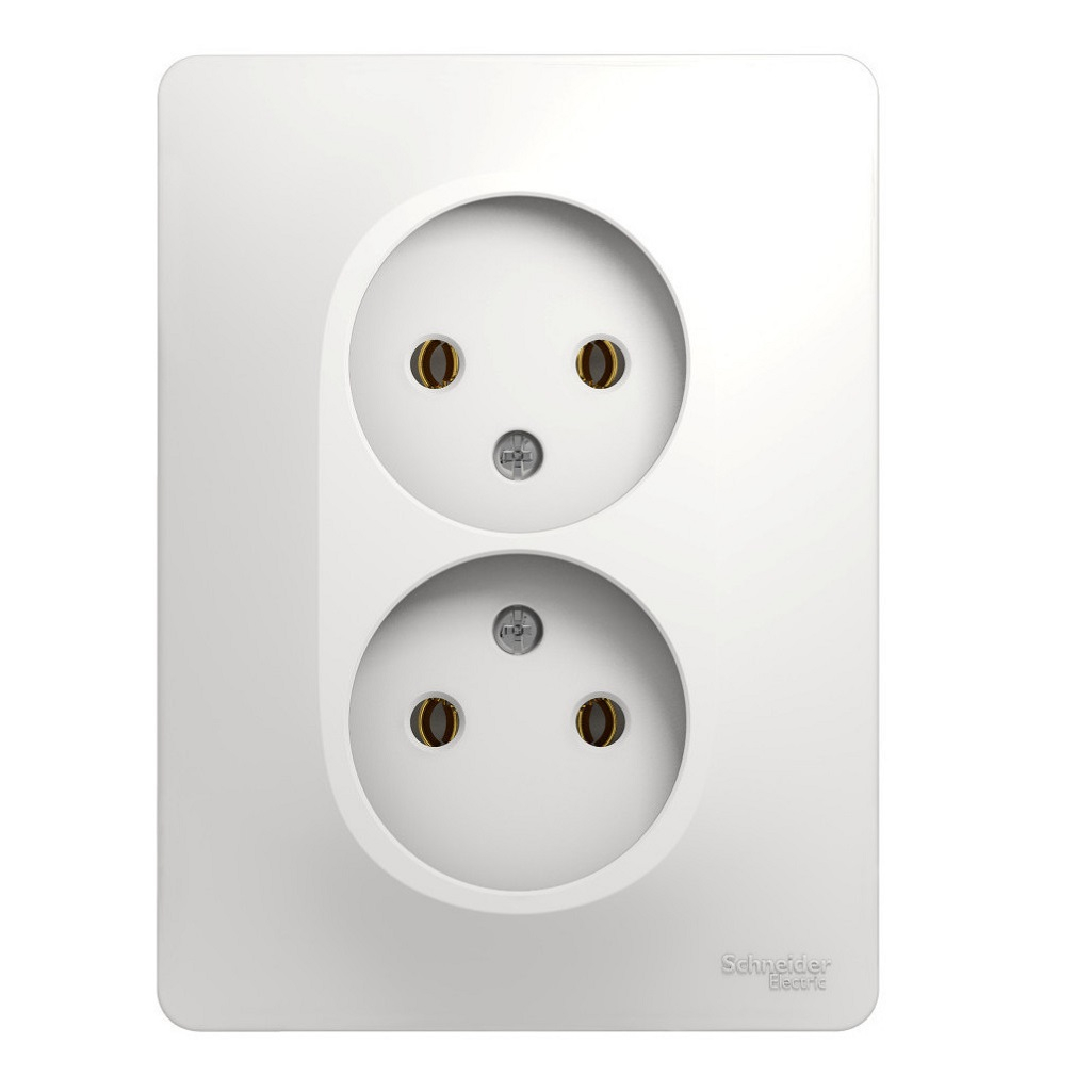 Розетка 2-местная Systeme Electric GLOSSA GSL000120 без заземления, встраиваемая, белая подходит для сетей 250 В, на ток 16 А.