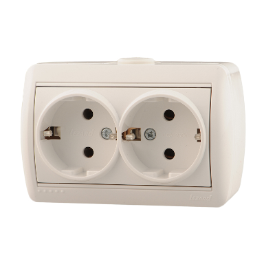 Розетка 2-местная LEZARD 710-0200-127 с заземлением, накладная, белая предназначена для монтажа с электросетями 250 В.