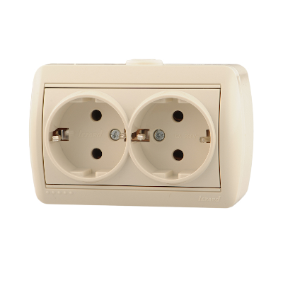 Розетка 2-местная LEZARD 710-0300-127 с заземлением, накладная, кремовая предназначена для открытой проводки и открытого монтажа с электросетями 250 В.