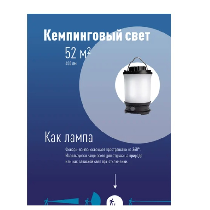- Освещает пространство вокруг себя на 360 градусов.