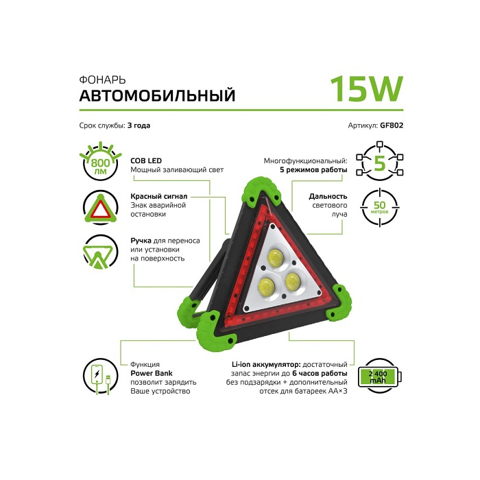 Фонарь автомобильный Gauss GFL802 предназначен для автомобилей или другой техники, позволяя осветить даже труднодоступные места во время ремонта или будет сигнализировать о временной остановке на дороге другим участникам движения. Используется современный li-ion аккумулятор, способный поддерживать длительное автономное освещение и проводить его зарядку от штатного USB разъема в вашем автомобиле или ноутбука. Прочная конструкция и мощный световой поток позволит с уверенностью решить любые задачи по освещению и обеспечит длительную службу.