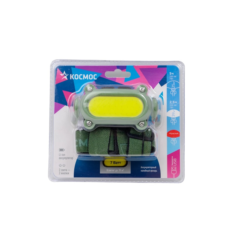 - Фонарь КОСМОС аккумуляторный налобный 7Вт COB КОС503Lit