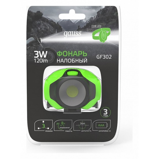 - Фонарь налобный Gauss GFL302 3W 3xAAА