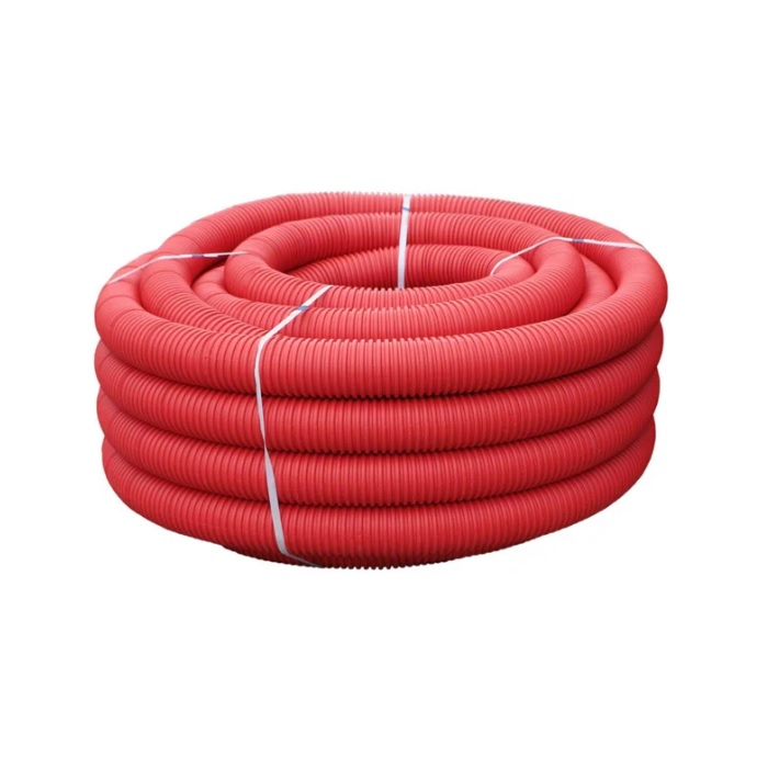 Труба двустенная ПНД/ПВД 110/93.8 мм гибкая, гофрированная красного цвета, с протяжкой. Труба подходит для прокладывания кабелей- силовых и различных слаботочных систем. Гофрированная труба защищает электропровод от внешних механических повреждений и воздействия окружающей среды.