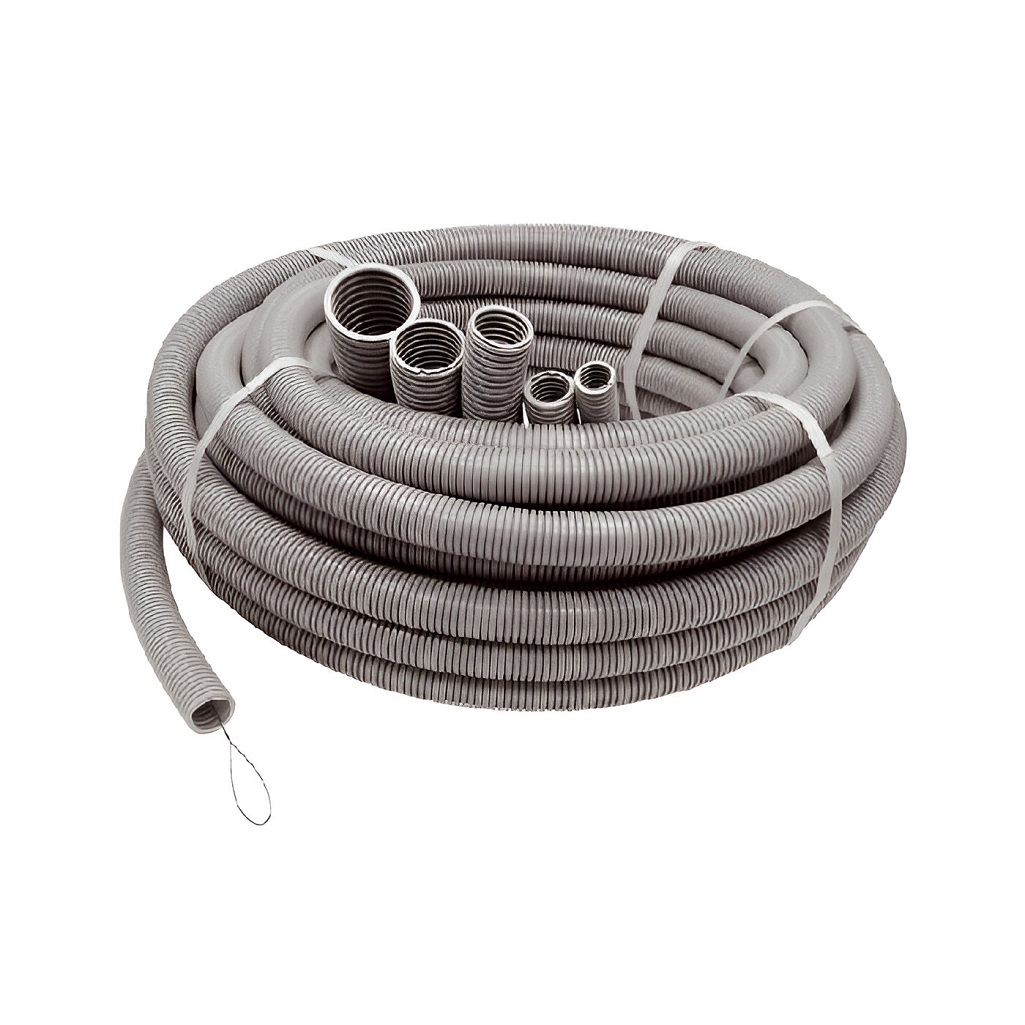 Труба гофрированная ПВХ Ruvinil 13201 с зондом, диаметр 32 мм, серая, легкая, бухта 25 м