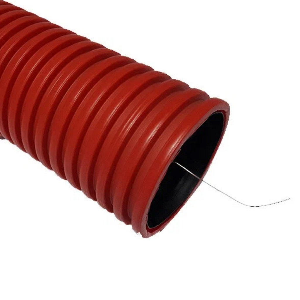 Труба гофрированная ПНД Ruvinil с зондом, диаметр 160 мм, двустенная, тяжелая используется для защиты сигнальных и информационных линий, линий связи и любого кабеля от повреждений механического характера и различного воздействия окружающей среды. Труба двустенная: внешний слоф выполнен из ПНД (полиэтилен низкого давления), внутренний - из ПВД (полиэтилен высокого давления). Наружный диаметр трубы составляет 160 мм, внутренний - 140.2 мм. Данная труба может применяться в качестве уличной проводки и проводки под заливку бетонной стяжкой. Внимание: применять такую трубу в деревянных домах нельзя! Труба гофрированная ПНД отличается стойкость к солнечному ультрафиолету и большой прочностью.