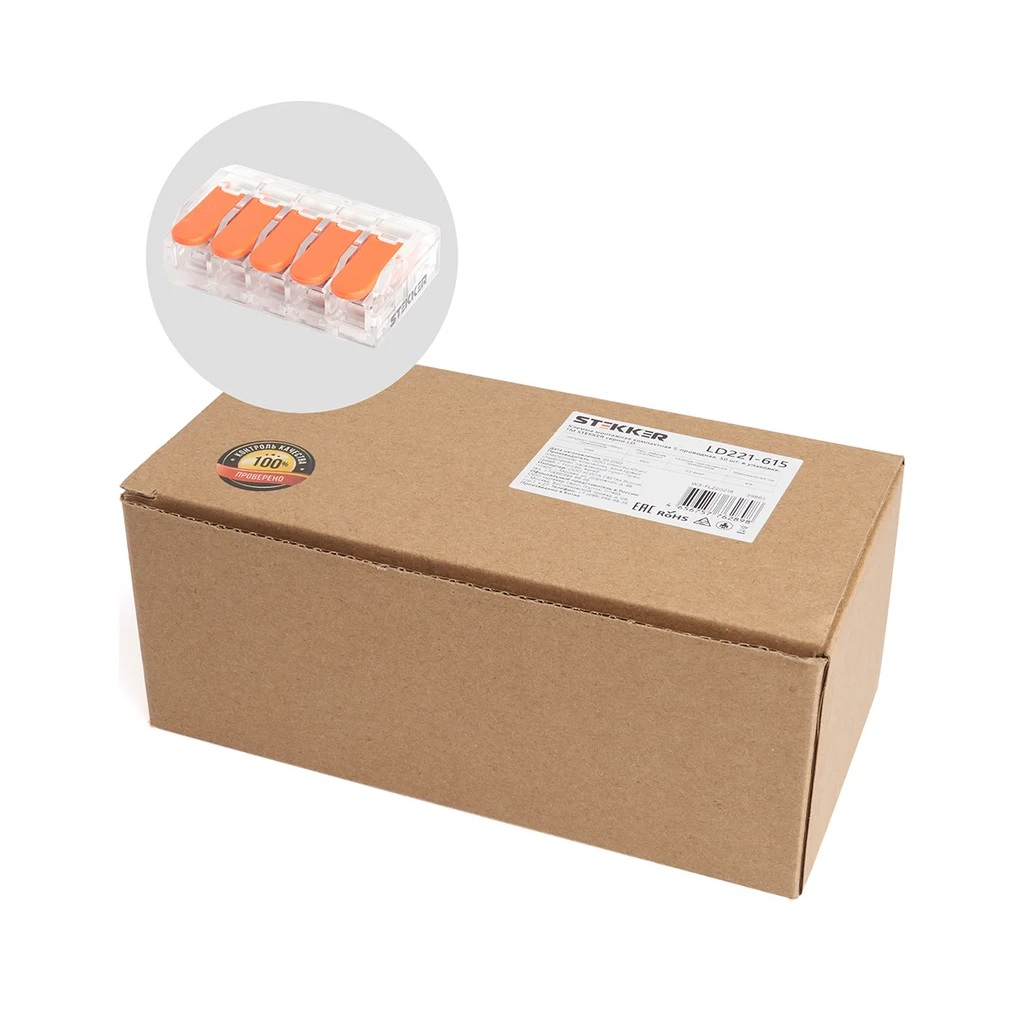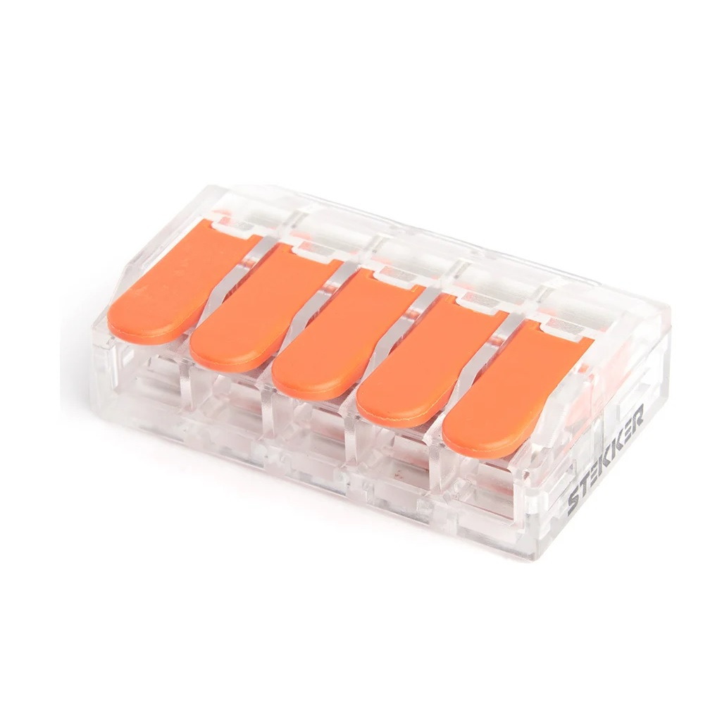 Клемма Stekker LD221-615 5-проводная, двойная система фиксации, сквозная проводимость