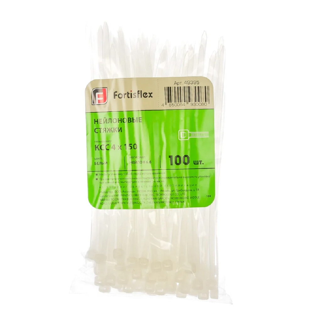 Стяжка кабельная Fortisflex КСС 49395 нейлон 4х150, упаковка 100 шт, белый