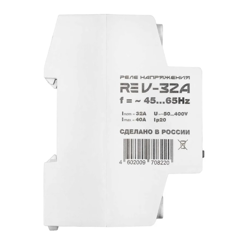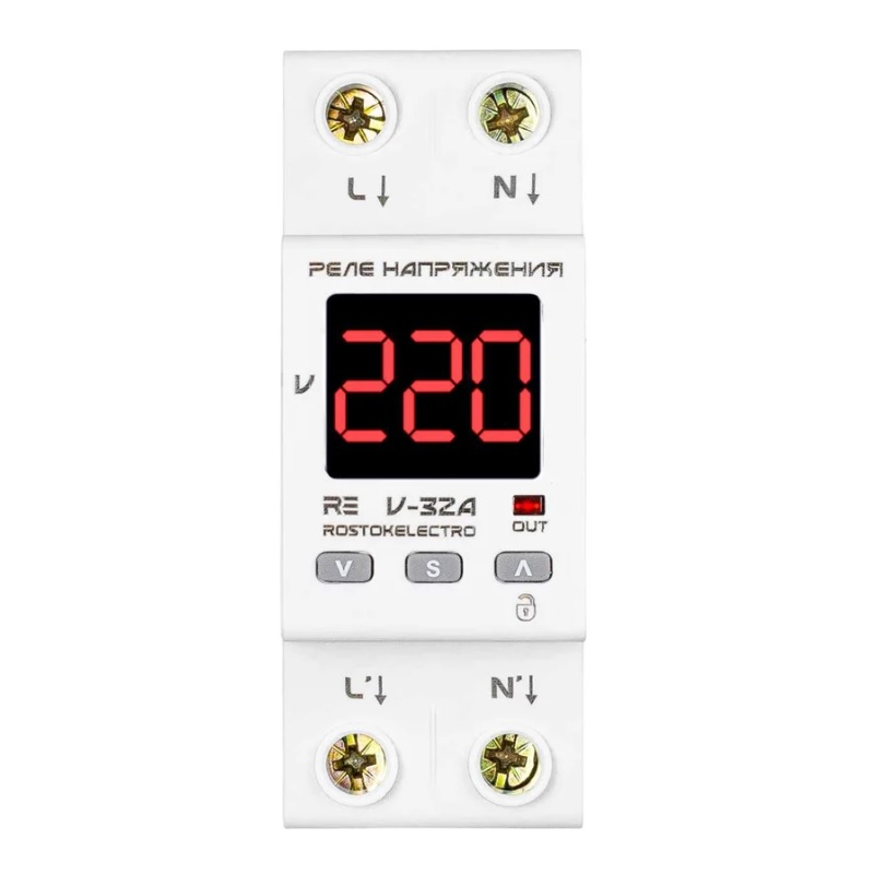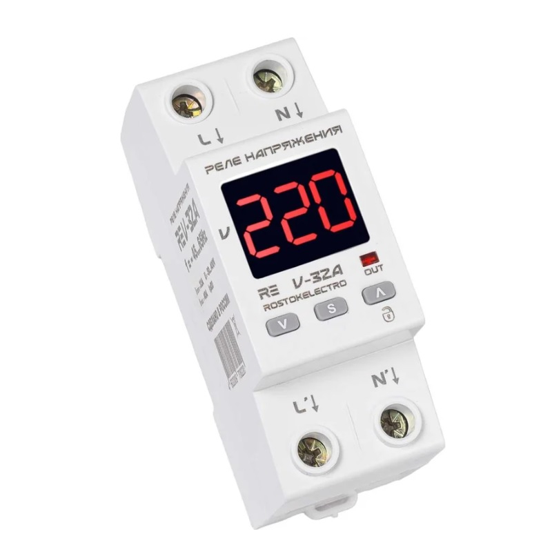 Реле напряжения RE V-32А предназначено для защиты электрического оборудования от скачков напряжения в сети, а также от последствий обрыва нулевого провода. Может работать как с бытовой электросетью с частотой 50Гц, так и источниками напряжения с нестабильной «плавающей» частотой (генераторы и др.). Для этого в меню настроек нужно выбрать соответствующий режим работы.