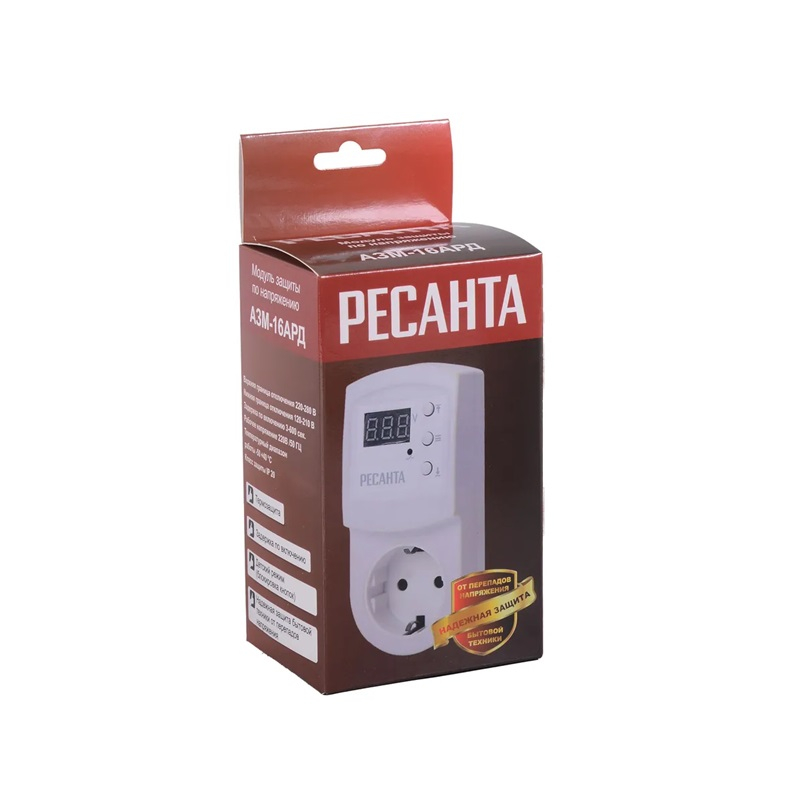 - Реле напряжения в розетку РЕСАНТА 16АРД