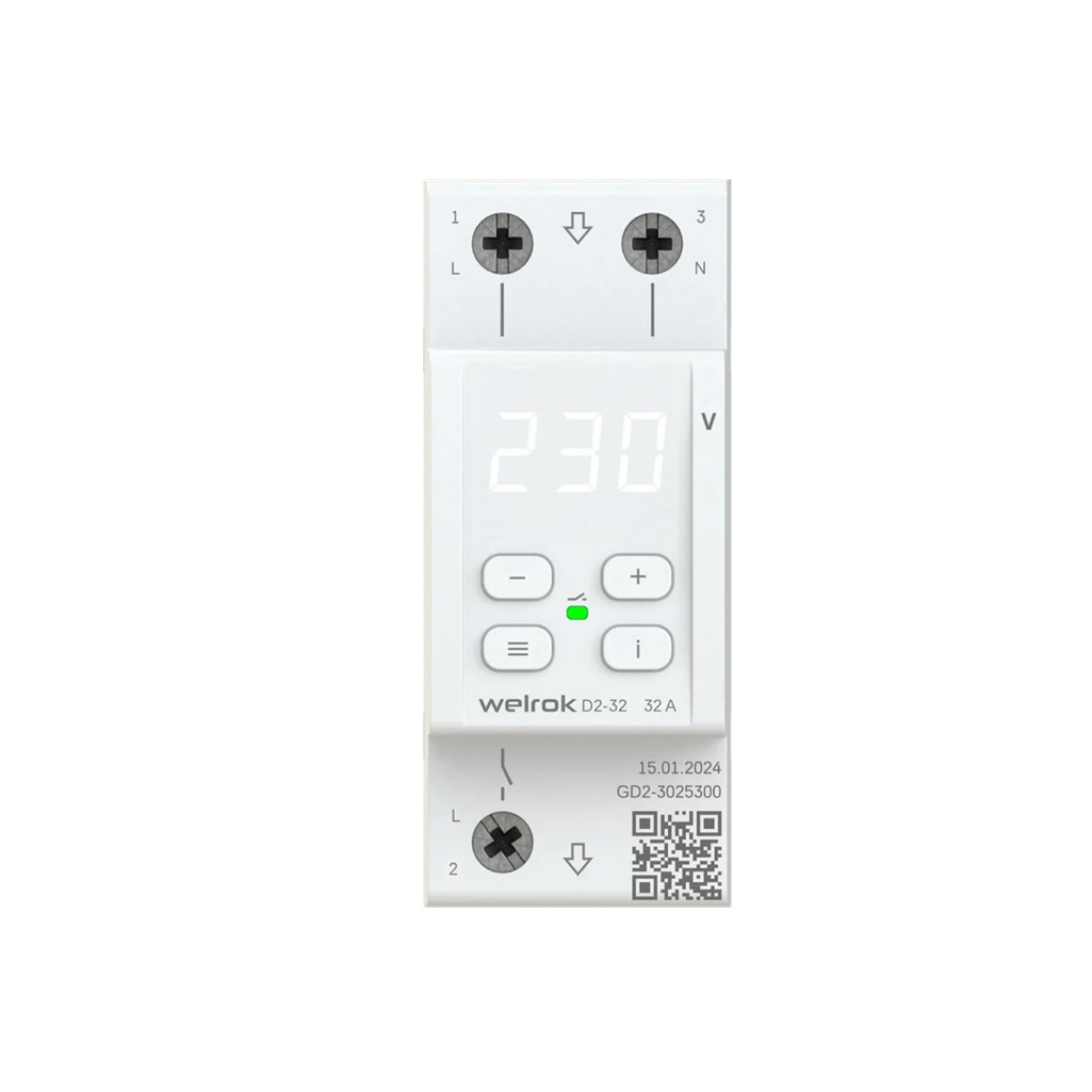 Реле напряжения Welrok D2-32, однофазное, с белой индикацией
