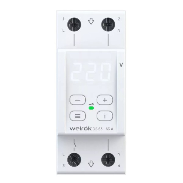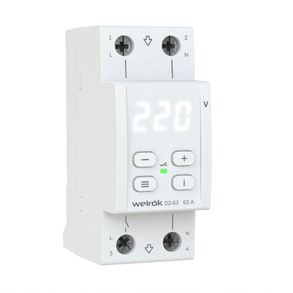 Реле напряжения Welrok D2-63, с транзитом нуля, 2 модуля, 63А, 420В, IP20