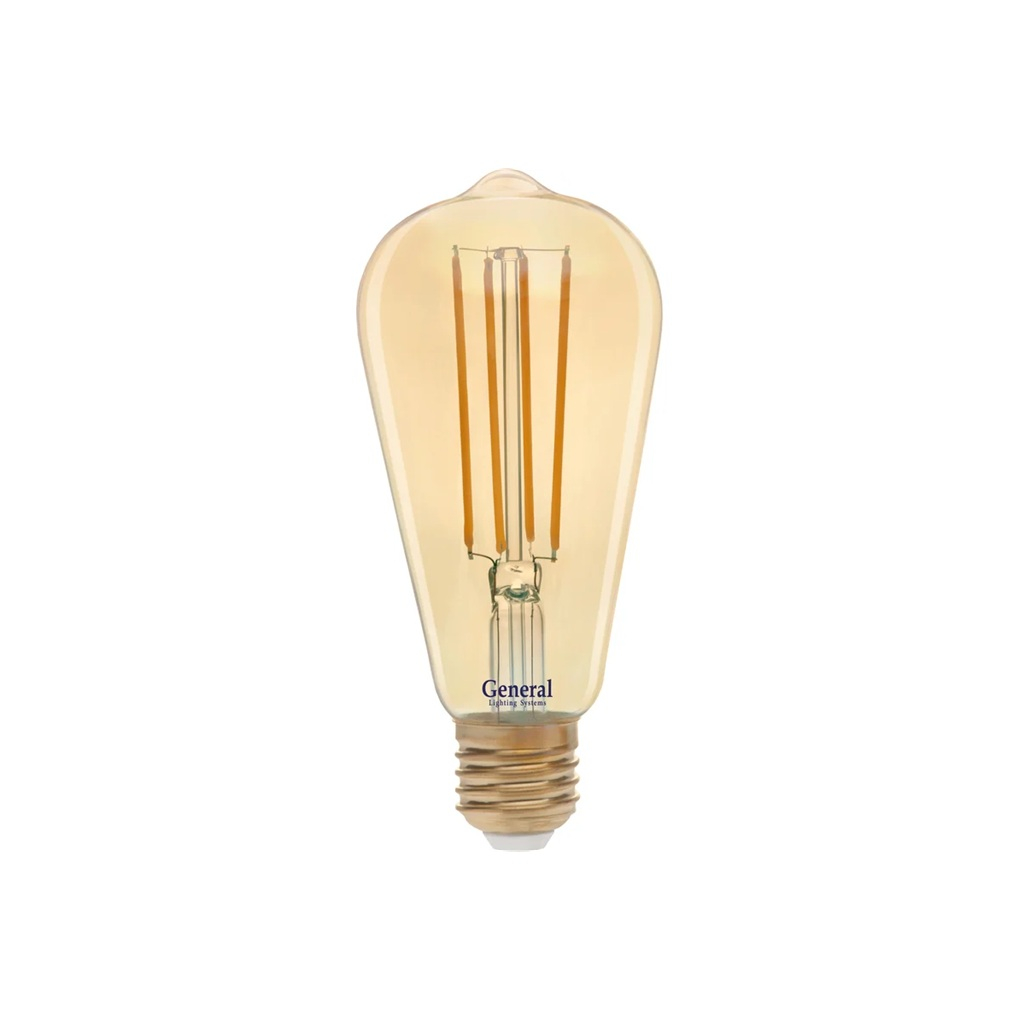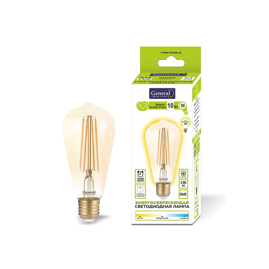 - Филаментная светодиодная лампа General GLDEN-ST64S-10-230-E27-2700 Золотая