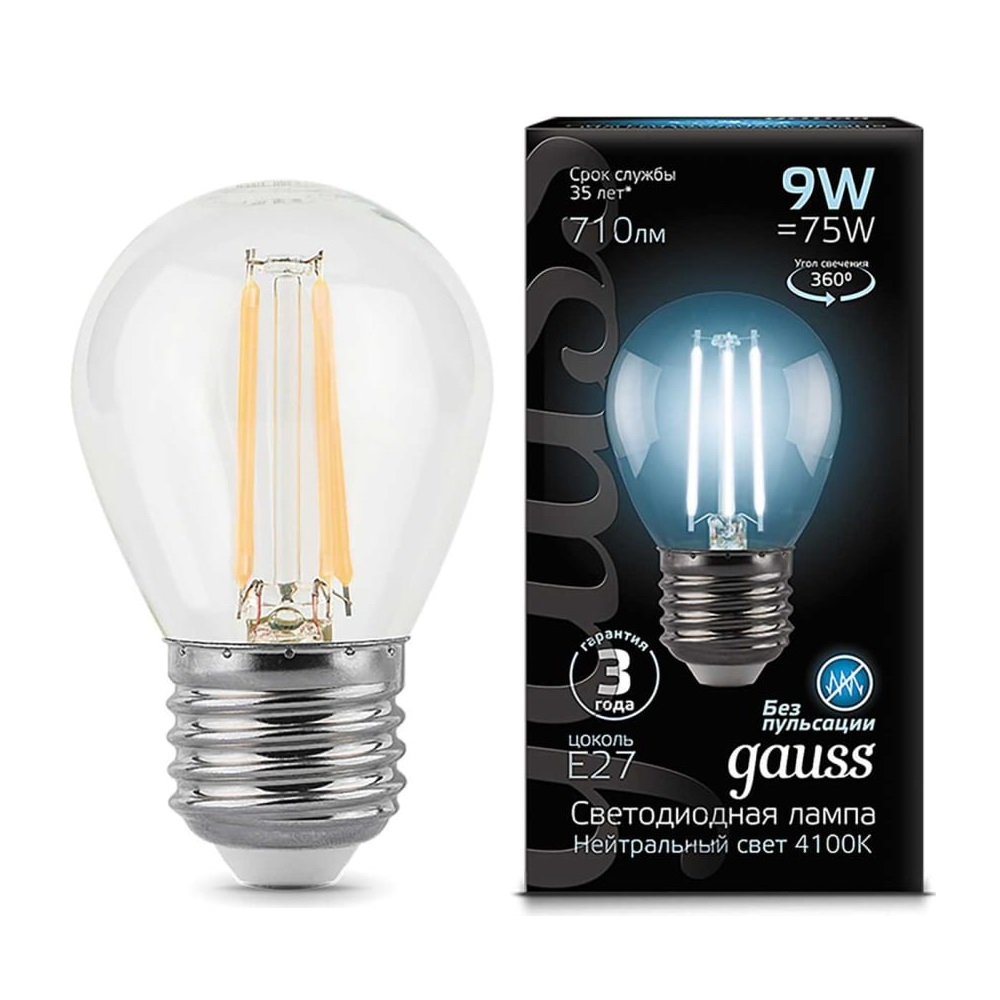 Описание лампы Gauss Filament Шар 9W 4100К Е27