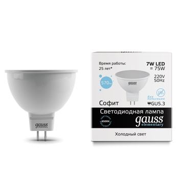 - LED Софит 7w GU5,3 6500к 550Лм GAUSS Elementary