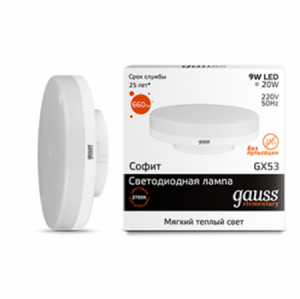 - Лампа LED GX53 9W 2700K 660Лм GAUSS Elementary