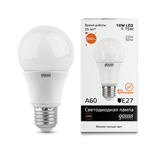 - LED ЛОН Е27 10w 3000K 880Лм GAUSS Elementary