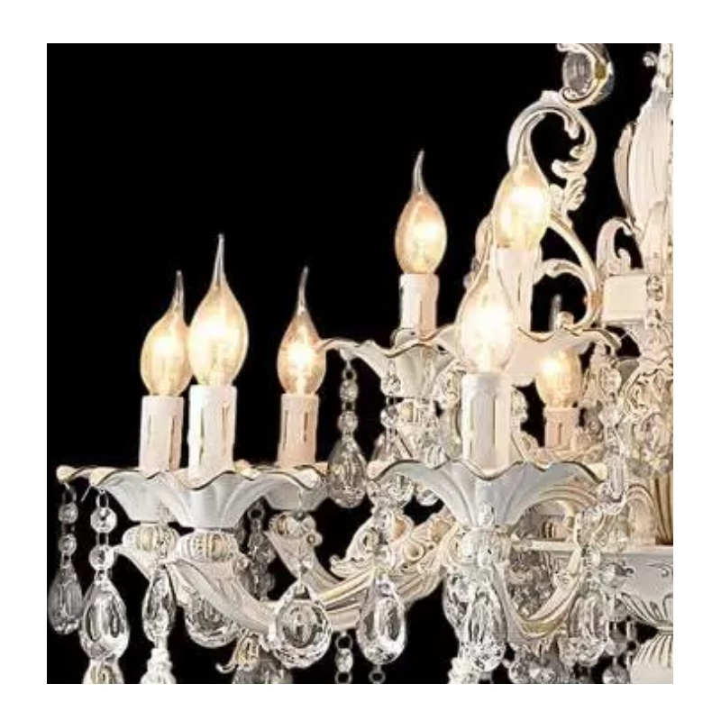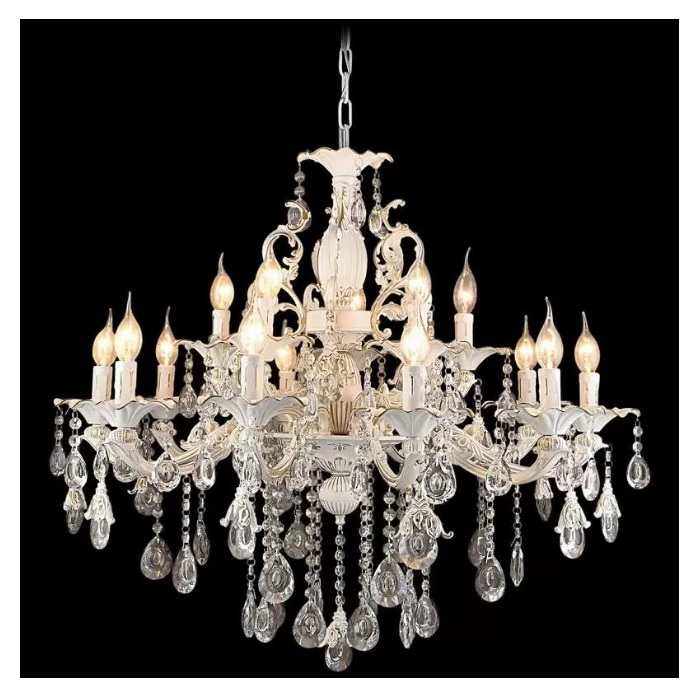 Высота люстры составляет 990 мм, а диаметр равен 850 мм при вес всего в10.8 кг, что значительно облегчает ее монтаж. Люстра с 15 лампами с цоколем E14, которые могут быть лампами накаливания или светодиодными с мощностью до 40 Вт. Общая мощность люстры составляет 600 Вт.