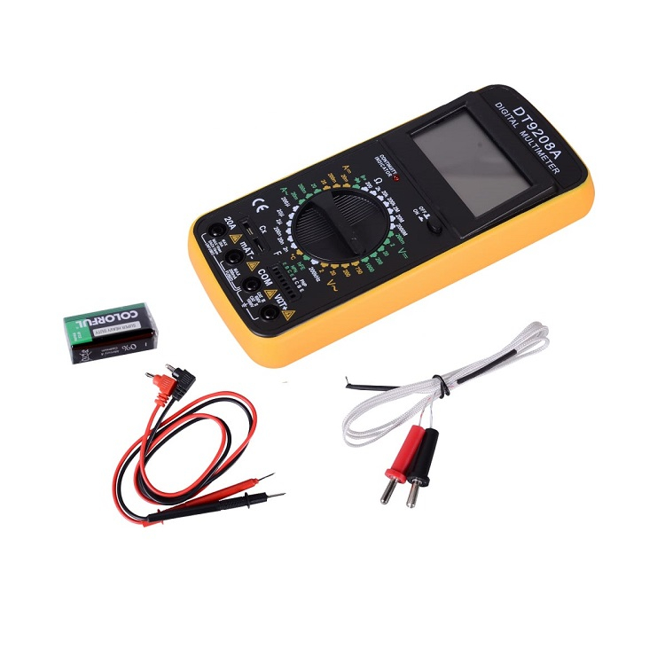 Мультиметр ТЕК DT-9208A используется для измерения тока, напряжения, сопротивления, параметров диодов и транзисторов, а также частоты и температуры. Точность замеров гарантируется производителем в диапазоне температур 18-28° С. Чувствительность составляет 100 мкВ. На большом цифровом дисплее отображаются результаты всех произведенных измерений. Мультиметр ТЕК DT 9208A оснащен удобным переключателем для настройки функций и диапазона измерения. Защитный хольстер смягчает приходящийся на корпус удар при случайных падениях.