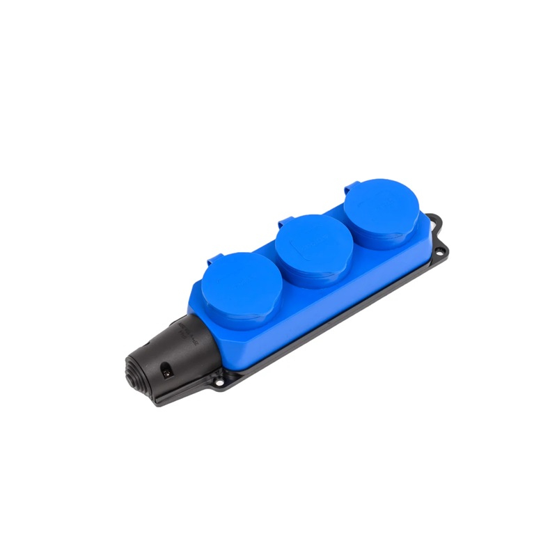 Описание розетки переносной STEKKER Одри RST16-23-44-4 3-местная каучук синий