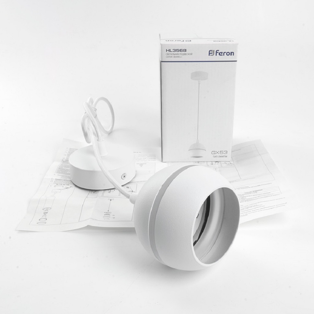 - Светильник потолочный Feron HL3568 на подвесе GX53 15W 230V, белый 90*80 48089