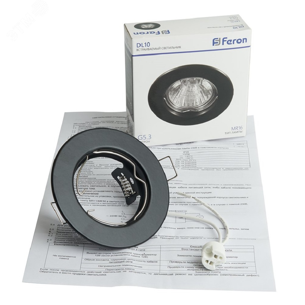 - Светильник потолочный встраиваемый Feron DL10 MR16 50W G5.3 черный матовый 48464