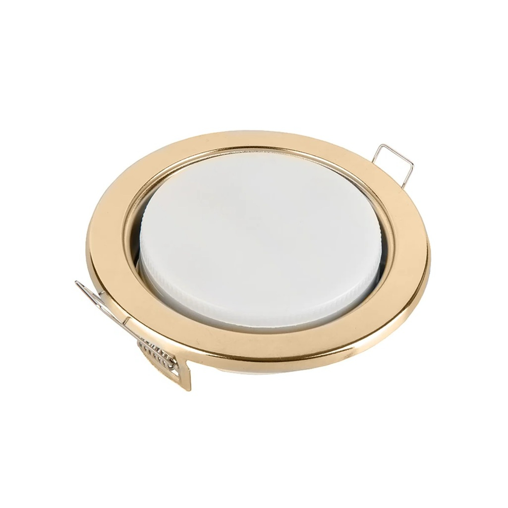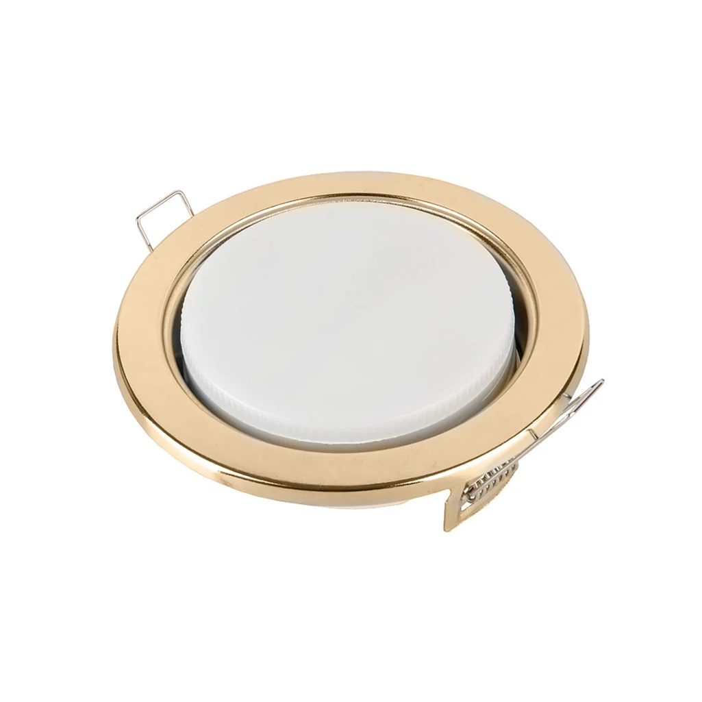 Светильник точечный General GCL-10GX53-H18-G с термокольцом GX53, IP20, золото - это роскошное решение для создания элегантного освещения в вашем интерьере. Благородный золотистый корпус придает светильнику изысканный вид и делает его настоящим украшением любого помещения. Роскошный дизайн светильника привлекает внимание своим благородным блеском и создает атмосферу роскоши и уюта. Золотистое покрытие не только эстетически привлекательно, но и устойчиво к повседневному использованию. Качество материалов гарантирует долговечность светильника. Металлический корпус обеспечивает надежную защиту всех компонентов, а золотистое покрытие сохраняет свой блеск и привлекательность на протяжении всего срока службы. Монтажная конструкция продумана до мелочей: термокольцо обеспечивает безопасную установку и защиту от перегрева, а механизм крепления гарантирует надежную фиксацию светильника. Экономичность решения достигается за счет возможности использования энергоэффективных ламп GX53, которые позволяют существенно сократить расходы на электроэнергию при сохранении высокого качества освещения.