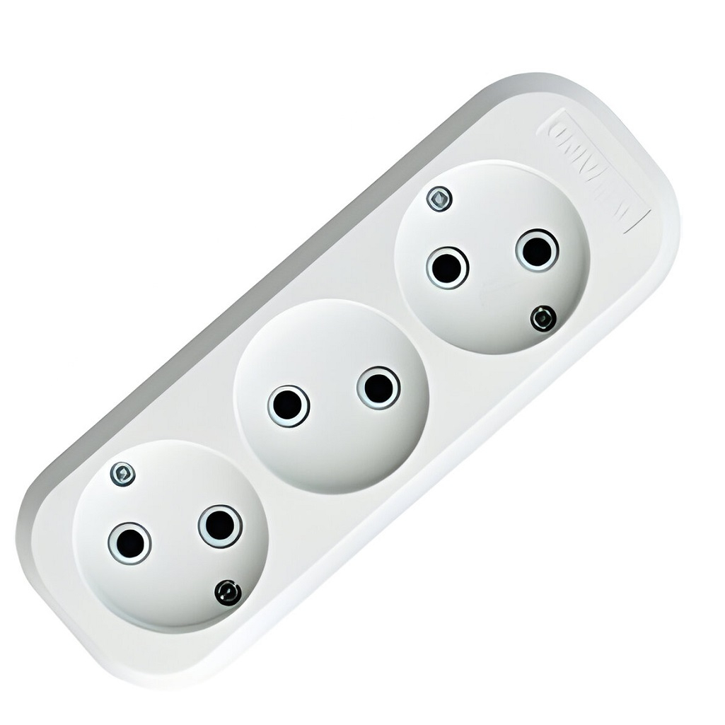 Колодка удлинителя 3-местная UNIVersal 19454 Е203, без заземления, белая, 1.3 кВт