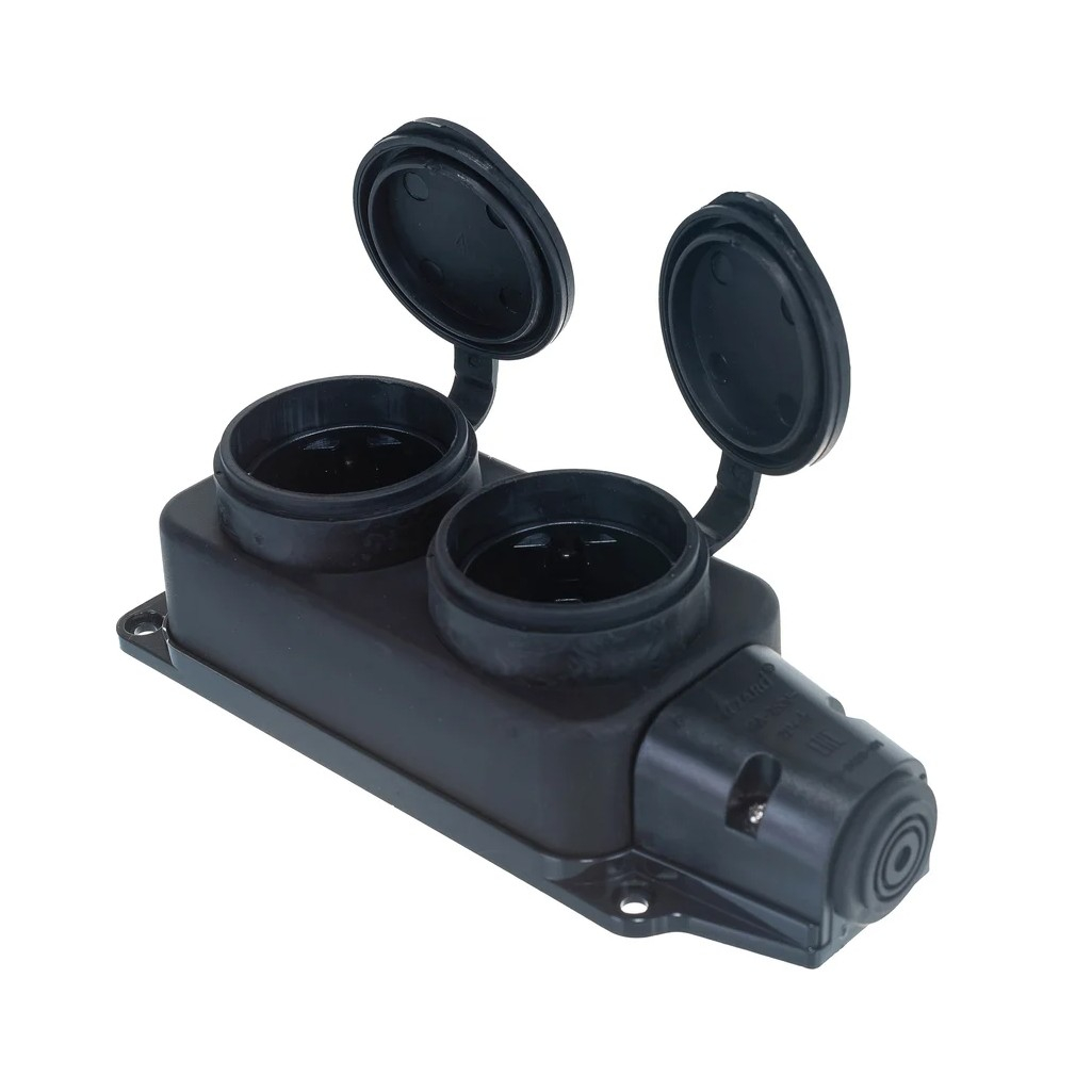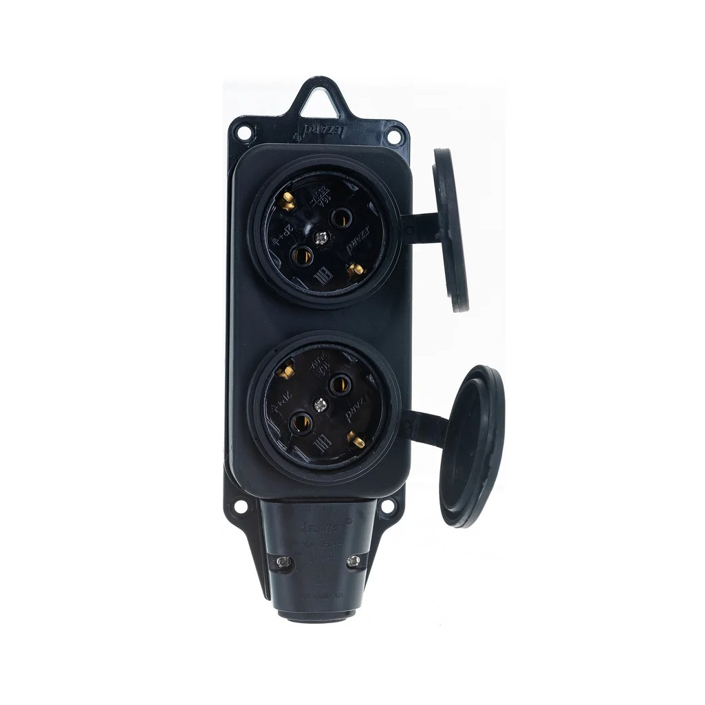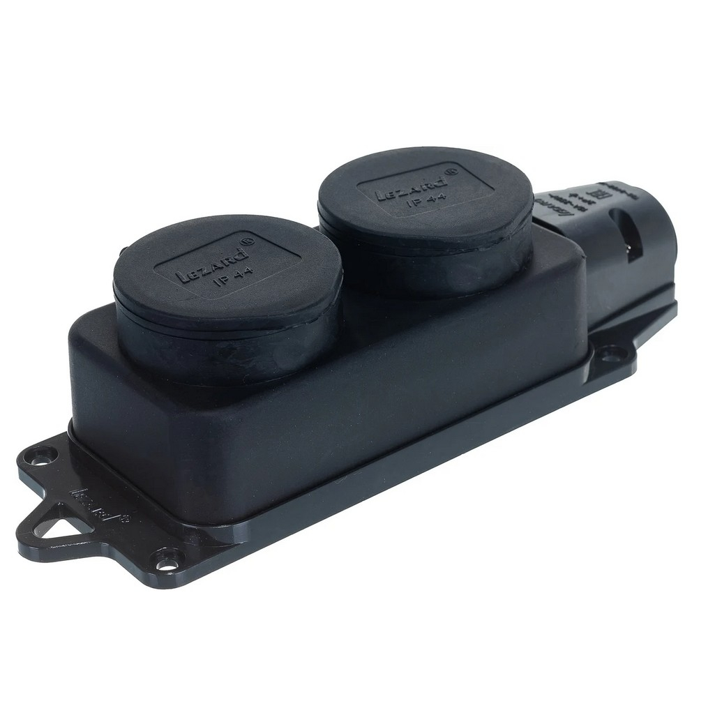 Колодка удлинителя 2-местная Lezard 2 106-0400-110, с заглушкой, с заземлением, каучук, черная, 3.5 кВт