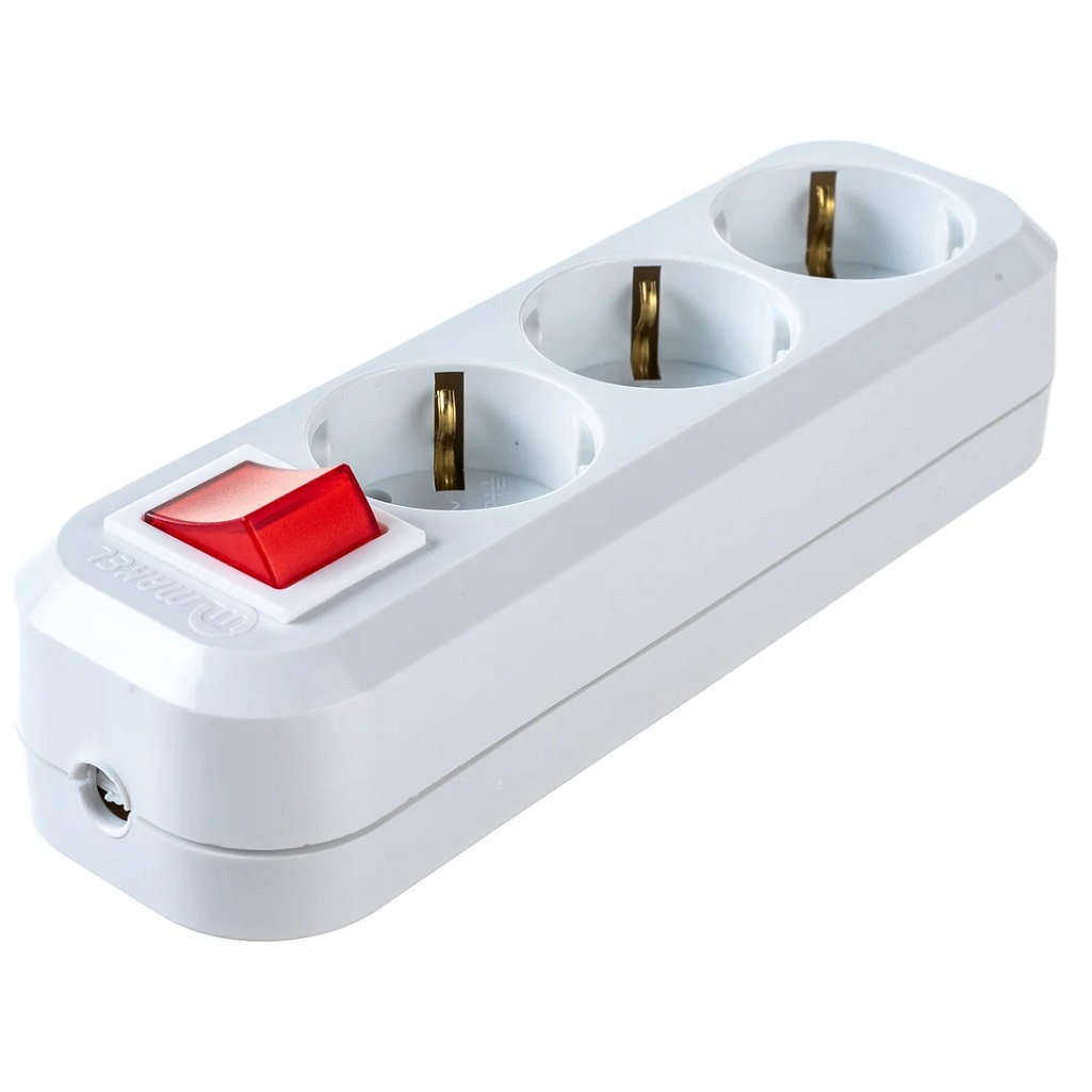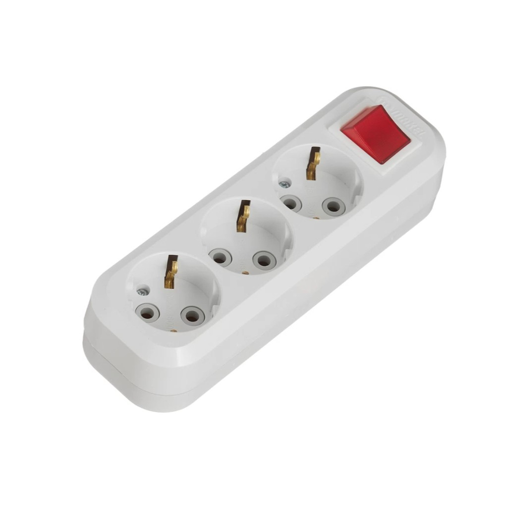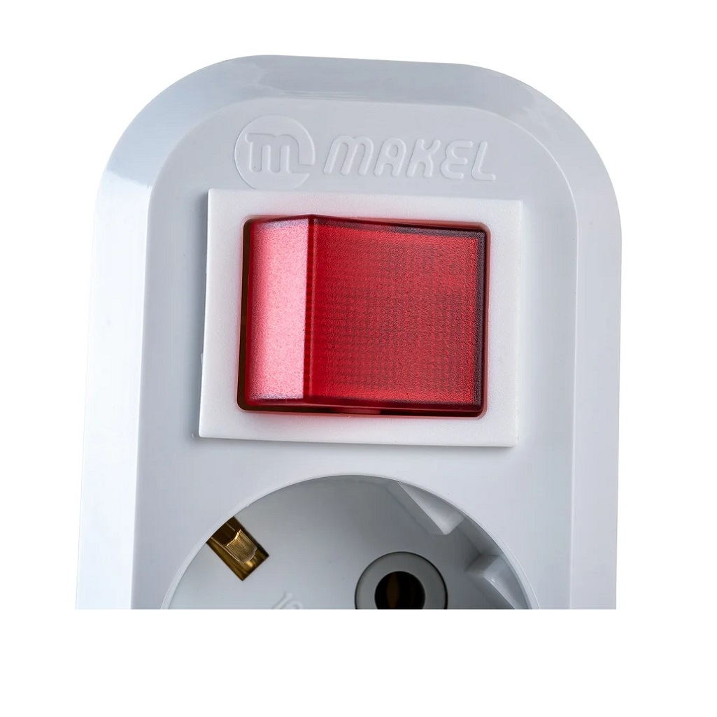 Колодка удлинителя 3-местная Makel 39294 MGP211 с заземлением, с выключателем, белая, 3.5 кВт