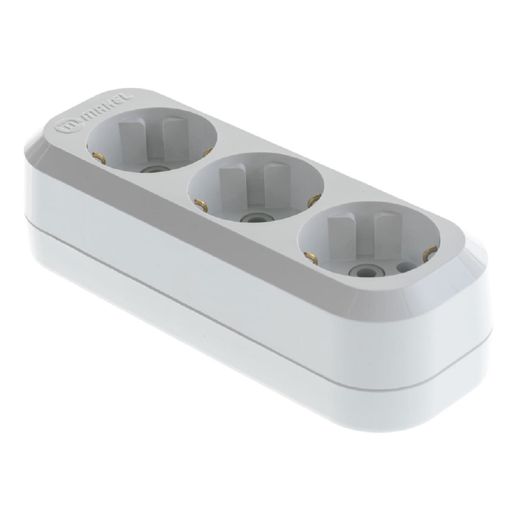 Колодка удлинителя 3-местная Makel 28918 MGP131, с заземлением, белая, 3.5 кВт