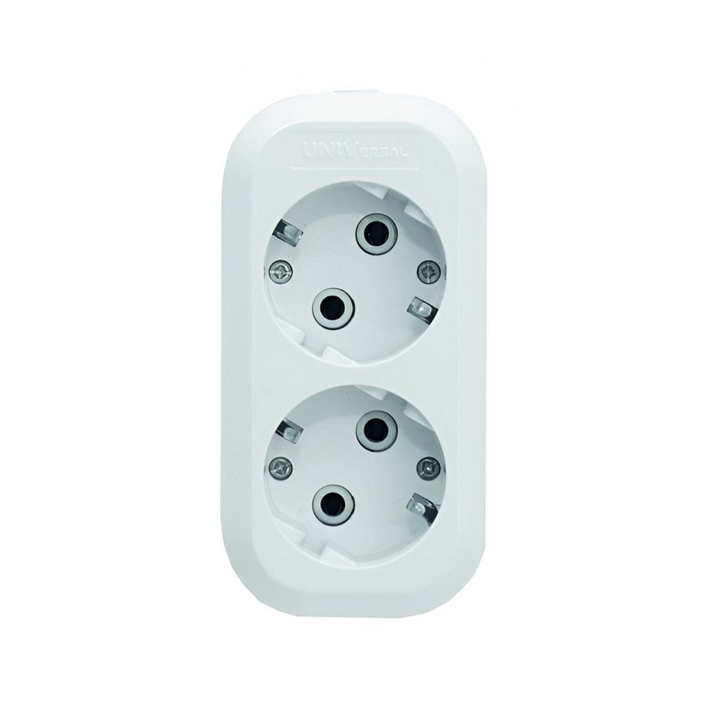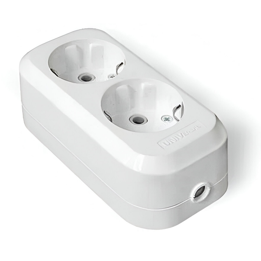 Колодка удлинителя 2-местная UNIVersal 221059 E302, с заземлением, белая, 3.5 кВт