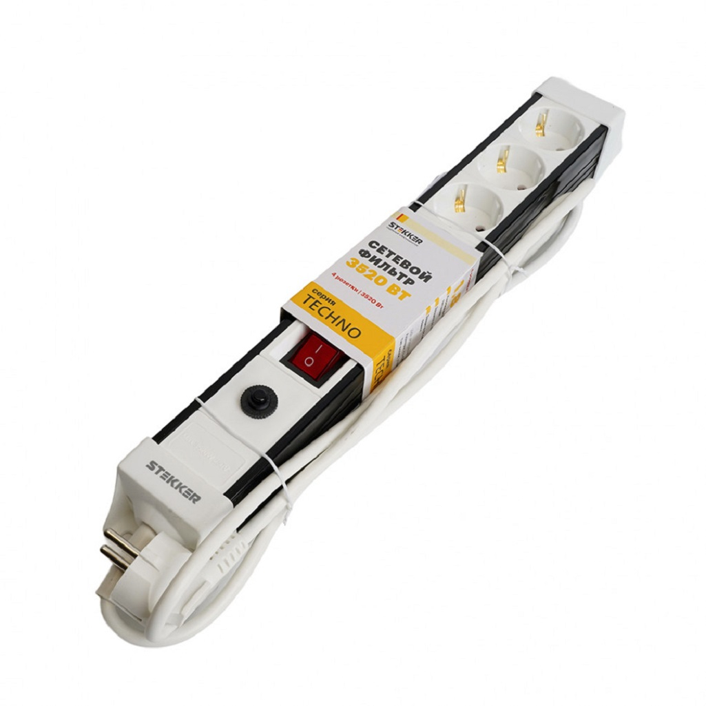 - Сетевой фильтр STEKKER 4-местный с/з 3x1мм2, 3 м 16А, серия Techno HM22-41-03 белый