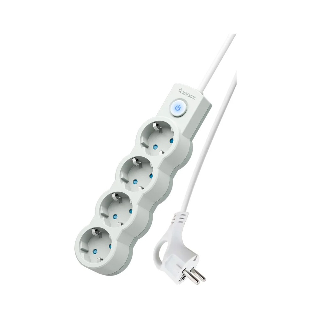 Удлинитель Космос YKsm5m-4g-Z-V10A-W 1802000, с заземлением, 4 розетки, 5 м, 2.2 кВт