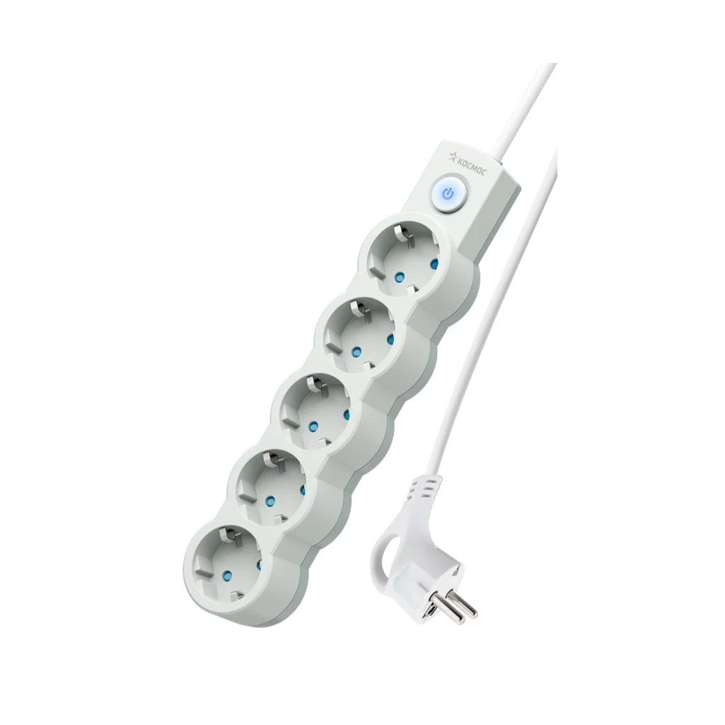 Удлинитель Космос YKsm5m-5g-Z-V10A-W 1801997 ПВС, с заземлением, 5 розеток, 5м, 2.2 кВт
