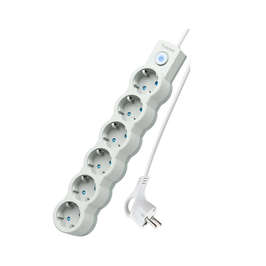 Удлинитель Космос YKsm1.5m-6g-Z-V10A-W 1801996 ПВС, с заземлением, 6 розеток, 1.5 м, 2.2 кВт