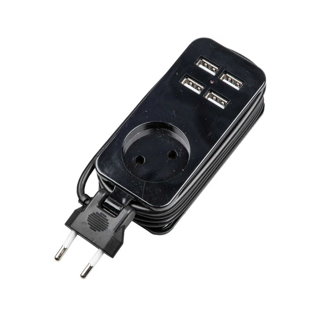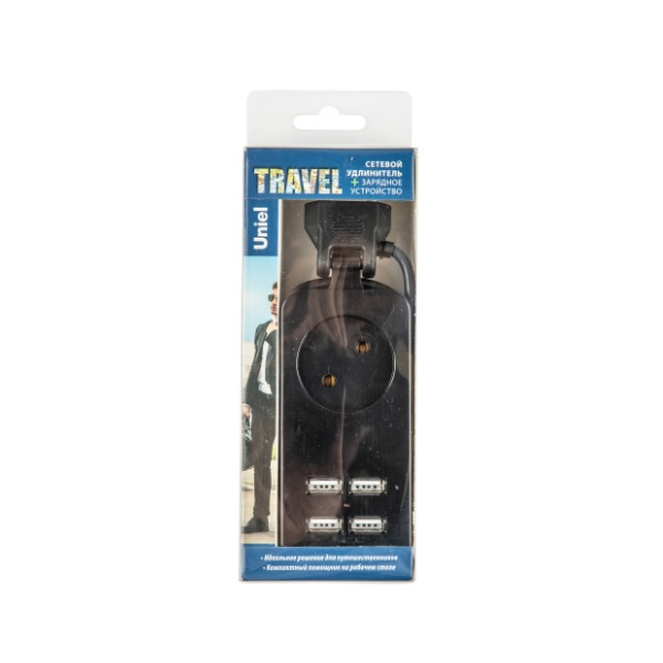 Описание удлинителя Uniel Travel S-CT1-1.5U 1гнездо BLACK 4USB