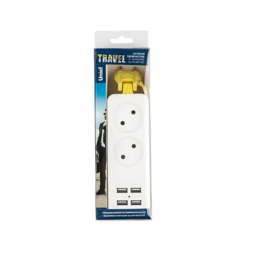 Удлинитель портативный 2-местный 4USB Uniel Travel S-CT2-1.5U UL-00011134 WHITE/GREEN, без заземления