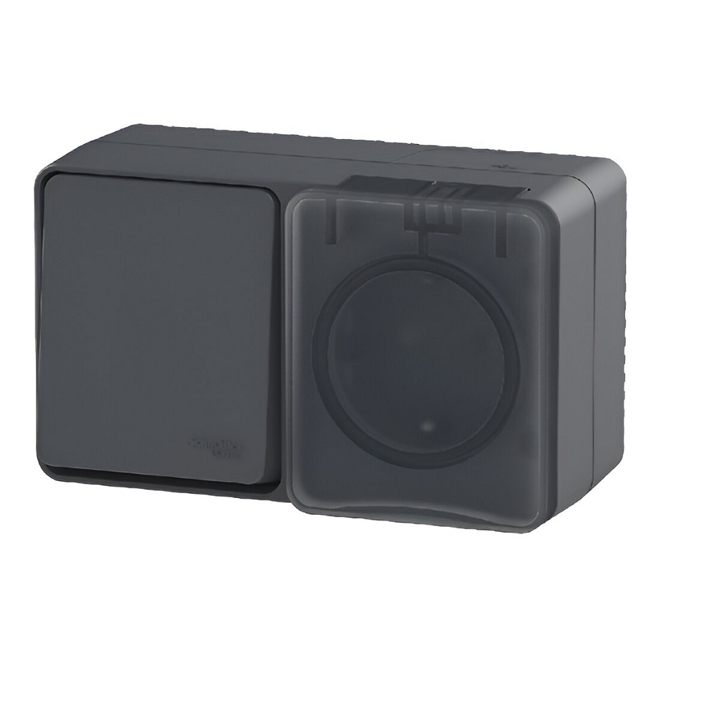 - Блок AtlasDesign 2-мес.о/у Выкл 1кл.+ Роз.с/з IP54 антрацит SchE ATN54470