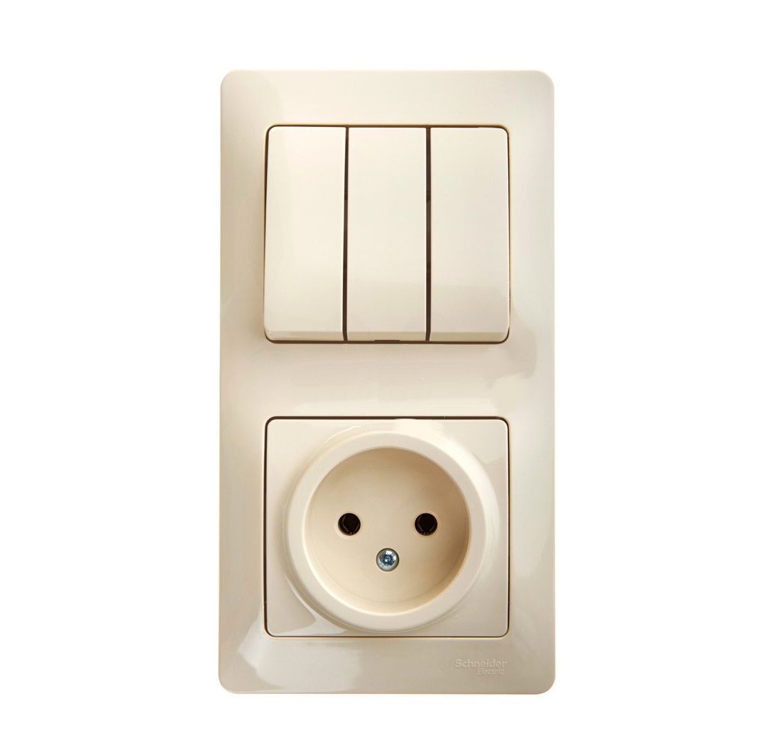 Блок: розетка с заземлением + выключатель трехклавишный Schneider Electric GLOSSA GSL000276, бежевый
